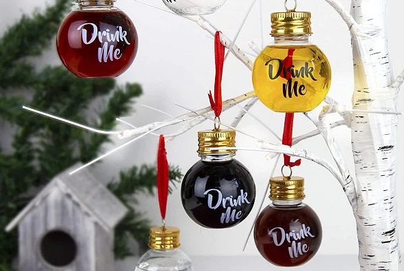 Każda bombka jest odkręcana i pomieści 50ml płynu. Można je sprytnie ukryć w gąszczu innych choinkowych dekoracji.