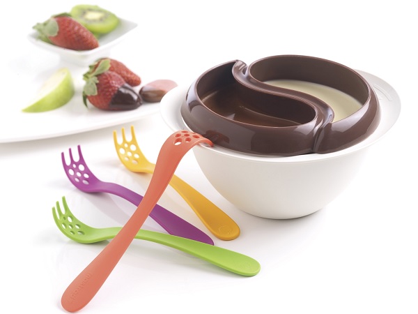 Obie miseczki Yin i Yang są dokładnie takiego samego rozmiaru, więc nikt nie poczuje się gorszy, a różnokolorowe widelczyki dołączone do zestawu ułatwią moczenie ulobionych owoców w czekoladowej kąpieli, i wyeliminują możliwość pomyłki widelca. Czekoladowe fondue Yin i Yang to świetny pomysł na zaskoczenie gości podczas przyjęcia, a także ciekawy gadżet na przyjęcie dla dzieciaków. Nietypowa forma, prosta obsługa i funkcjonalność sprawiają, że ten pomysłowy zestaw do czekoladowego deseru super sprawdzi się w roli prezentu.