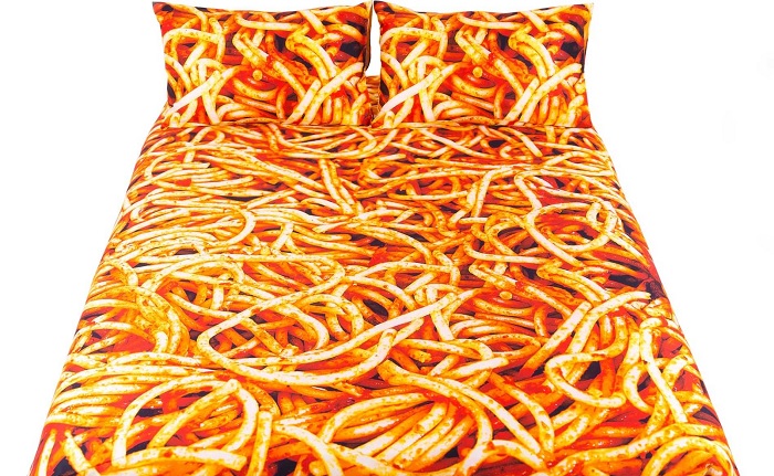 Pościel spaghetti to marzenie każdego łasucha. Nie tylko nadaje sypialni niepowtarzalnego charakteru, ale także zapewnia kolorowe sny, pełne włoskich specjałów kulinarnych. Oryginalna grafika jest dziełem współpracy dwóch włoskich firm, marki Seletti i magazynu Toiletpaper.
